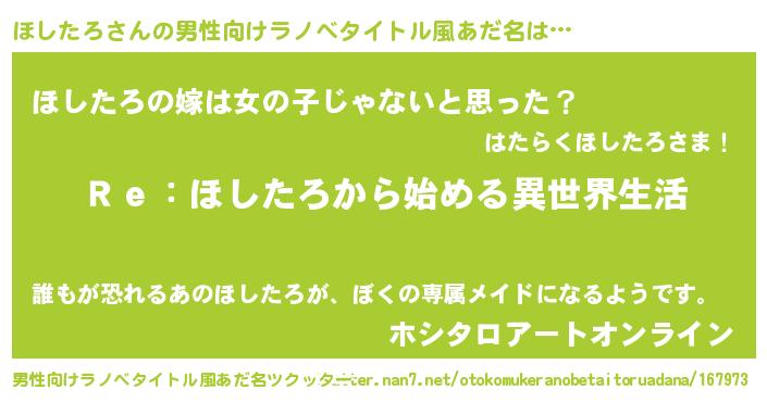 | 女子向けラノベタイトル風あだ名 | 『闇のほしたろ』 |