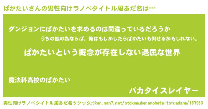 | 胡散臭い通販商品みたいなあだ名 | 『絶対に幸福をもたらす水素水…その名も「ぱかたい」』 |