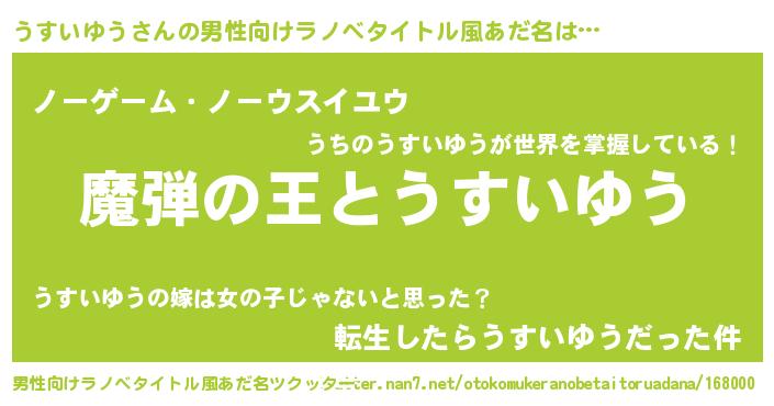 | ヒーロー風カッコイイあだ名 | 『仮面ウスダー』『天空の使者うすいゆう』 |