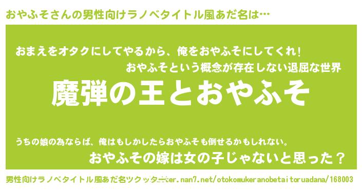 | 意味不明あだ名 | 『住所不定無職おやふそ(93歳)』 |