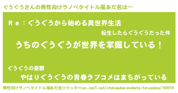 | 胡散臭い通販商品みたいなあだ名 | 『芸能人もオススメする高麗人参…その名も「ぐうぐう」』 |