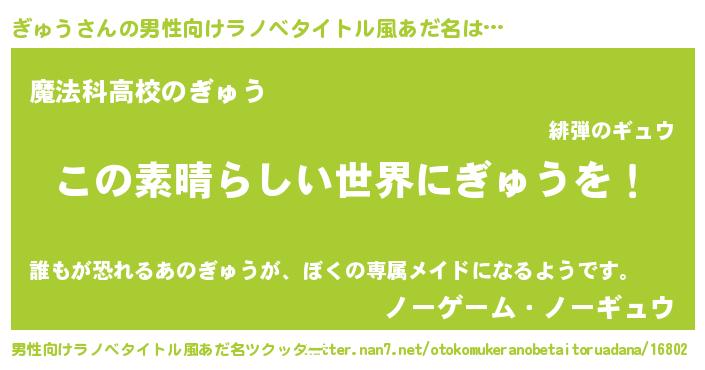 | 意味不明あだ名 | 『住所不定無職ぎゅう(98歳)』『自称ぎゅう』 |