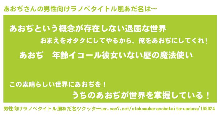 | 胡散臭い通販商品みたいなあだ名 | 『前代未聞の健康食品…その名も「あおぢ」』 |