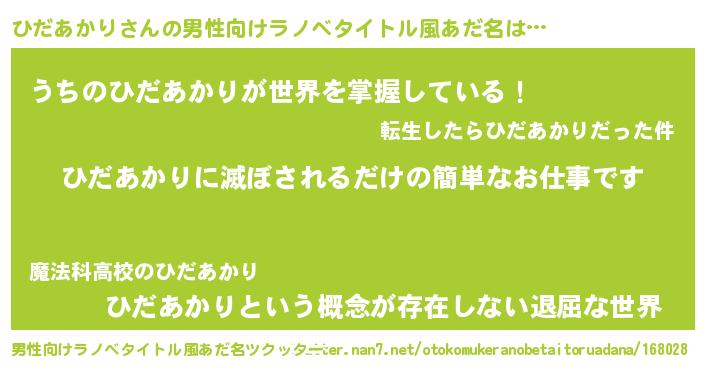 | ヒーロー風カッコイイあだ名 | 『ネオヒダアカリ』『究極戦士ヒダアカリ』 |
