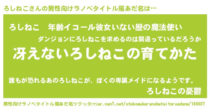 | 胡散臭い通販商品みたいなあだ名 | 『モテモテ間違いなし霊験あらたかなお札…その名も「ろしねこ」』 |