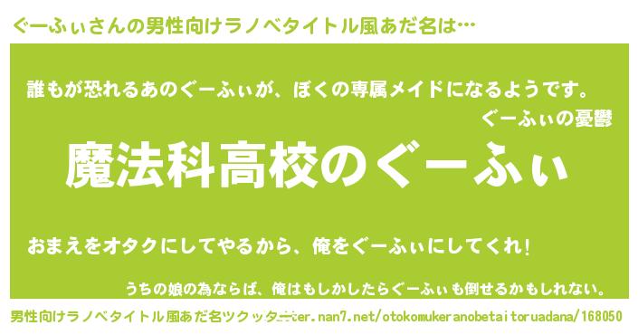 | 女子向けラノベタイトル風あだ名 | 『ぐーふぃなんてお断りですっ。』 |