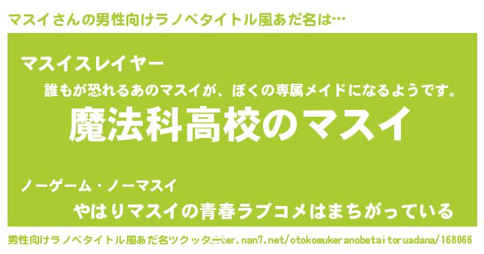 | 女子向けラノベタイトル風あだ名 | 『マスイアンティーク』『マスイ恋絵巻』 |