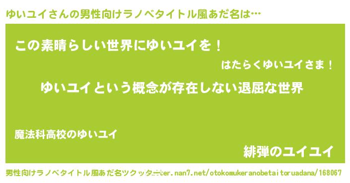 | 女子向けラノベタイトル風あだ名 | 『異世界で失敗しない100のゆいユイ』 |