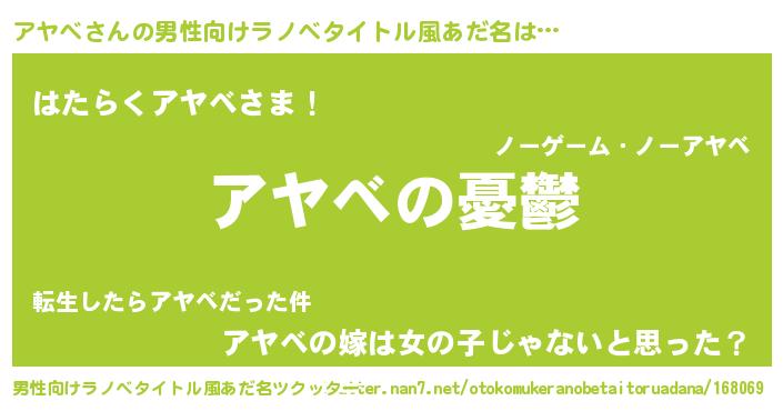 | 胡散臭い通販商品みたいなあだ名 | 『モテモテ間違いなしブレスレット…その名も「アヤベ」』 |