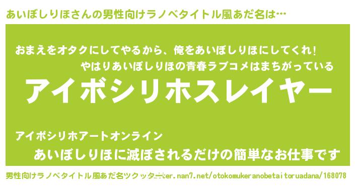 | 胡散臭い通販商品みたいなあだ名 | 『100人中100人が認めたイリジウム磁石…その名も「あいぼしりほ」』 |