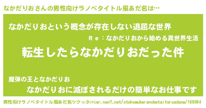 | 胡散臭い通販商品みたいなあだ名 | 『来世でも幸せになれる水素水…その名も「なかだりお」』 |