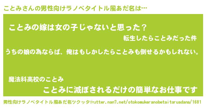 | 女子向けラノベタイトル風あだ名 | 『ことみの婚約者』『ことみ様がみてる』 |