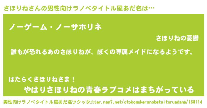 | 肩書あだ名 | 『さほりね担任』『さほりね助教授』 |