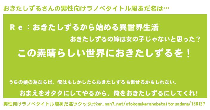 | 意味不明あだ名 | 『住所不定無職おきたしずる(68歳)』 |