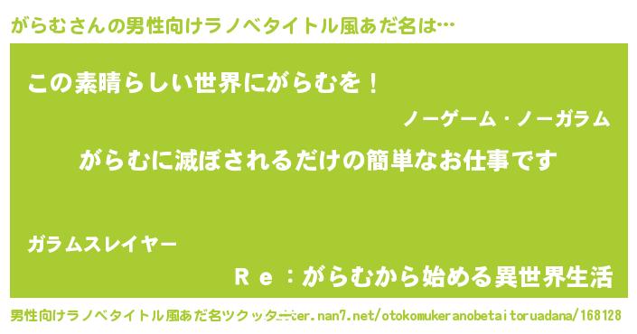 | ヘコむあだ名 | 『がらむ(爆)』『レバニラ』『がらお』 |
