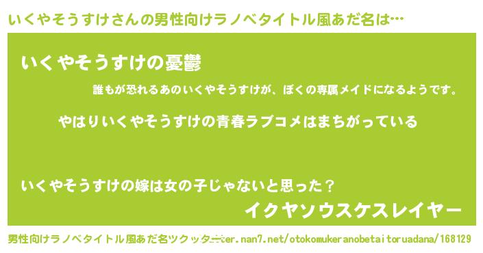 | ファンタジー風あだ名 | 『エターナルイクヤソウスケー』 |