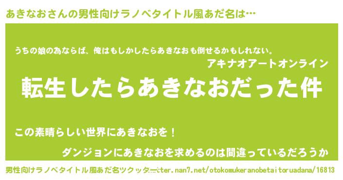ヒーロー風カッコイイあだ名 | 『ウルトラあきなおマン』『天弓騎士アキ』 |