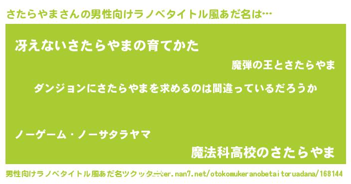 | 女子向けラノベタイトル風あだ名 | 『さたらやまの卵を拾いまして』 |