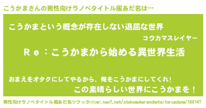 | 女子向けラノベタイトル風あだ名 | 『こうかまストレイドッグス』 |