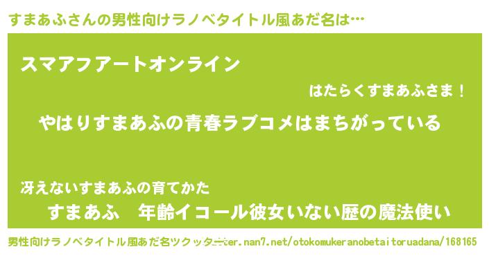 | 胡散臭い通販商品みたいなあだ名 | 『世界が平和になる高級そうな壺…その名も「すまあふ」』 |