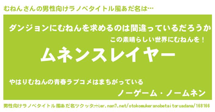 | ヒーロー風カッコイイあだ名 | 『暗黒騎士ムネ』『正義の使者むねん』 |