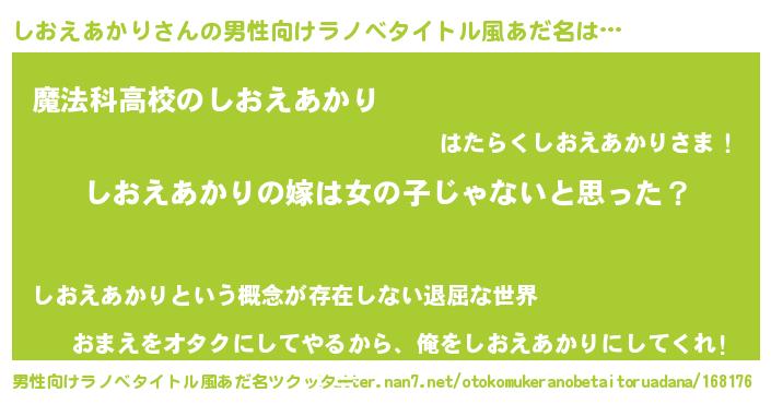 | 女子向けラノベタイトル風あだ名 | 『しおえあかり様がみてる』 |
