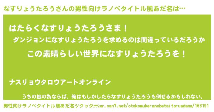 | 意味不明あだ名 | 『住所不定無職なすりょうたろう(4歳)』 |