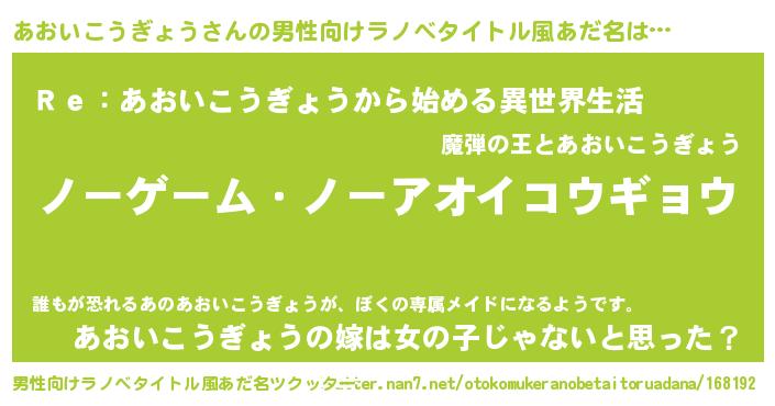 | 女子向けラノベタイトル風あだ名 | 『あおいこうぎょう恋絵巻』 |