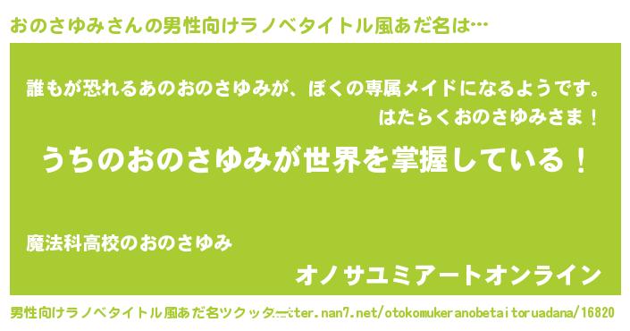 | 女子向けラノベタイトル風あだ名 | 『男装おのさゆみの憂鬱な任務』 |