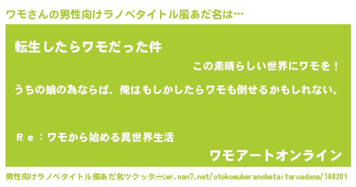 | 胡散臭い通販商品みたいなあだ名 | 『運命の人と巡り会える高級そうな絵画…その名も「ワモ」』 |