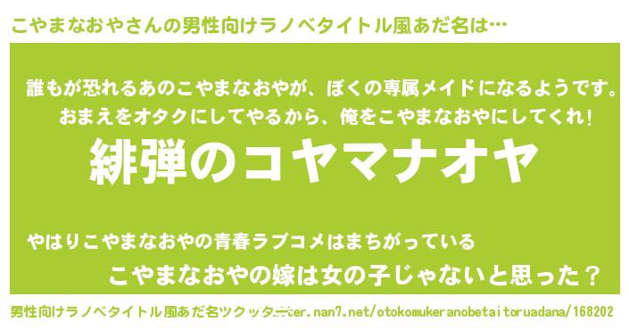 | 女子向けラノベタイトル風あだ名 | 『シンデレラこやまなおや家の靴箱館』 |
