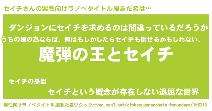 | ヒーロー風カッコイイあだ名 | 『仮面セイダー』『黄金騎士セイ』 |