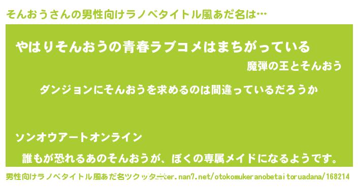 | ヒーロー風カッコイイあだ名 | 『銀牙騎士ソン』『ウルトラそんおうマン』 |
