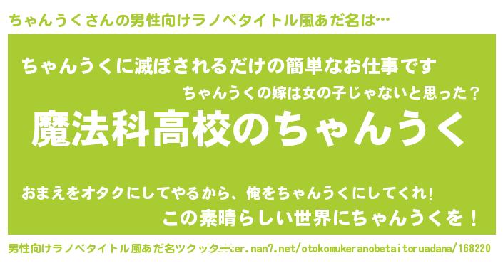 | 女子向けラノベタイトル風あだ名 | 『ちゃんうくなんてお断りですっ。』 |