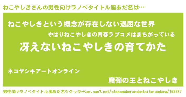 | 胡散臭い通販商品みたいなあだ名 | 『来世でも幸せになれる健康食品…その名も「ねこやしき」』 |