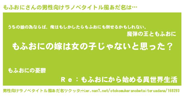 | 胡散臭い通販商品みたいなあだ名 | 『全米が絶賛したサプリメント…その名も「もふおに」』 |
