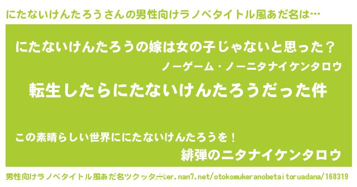 | 女子向けラノベタイトル風あだ名 | 『にたないけんたろうの玉の輿計画!』 |