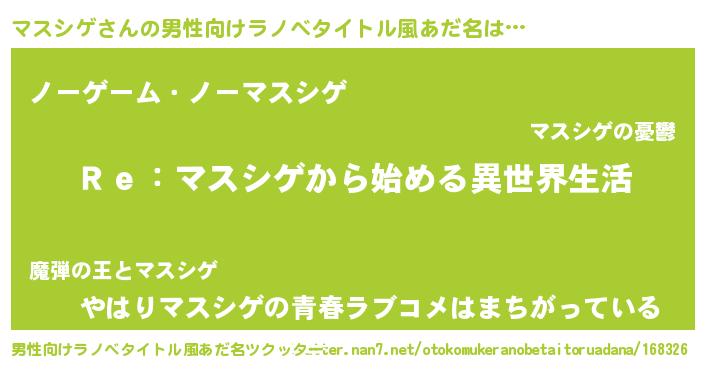 | 女子向けラノベタイトル風あだ名 | 『闇のマスシゲ』『死神マスシゲの再婚』 |