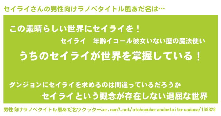 | 胡散臭い通販商品みたいなあだ名 | 『あなたにだけ特別に提供する世界で10本だけ現存している希少なブランデー…その名も「セイライ」』 |