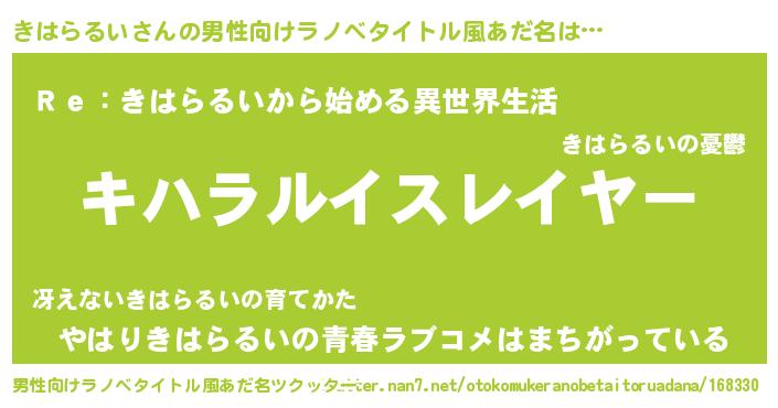 | 料理風あだ名 | 『きはらるいごはん』 |