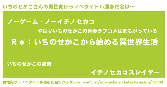 | 意味不明あだ名 | 『自称いちのせかこ』 |