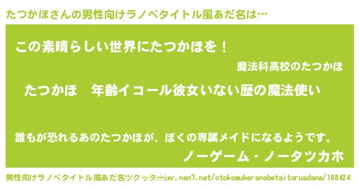 | 胡散臭い通販商品みたいなあだ名 | 『あなたにだけ特別に提供する世界で10本だけ現存している希少なブランデー…その名も「たつかほ」』 |