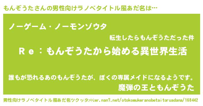 | 女子向けラノベタイトル風あだ名 | 『闇のもんぞうた』『もんぞうた恋絵巻』 |
