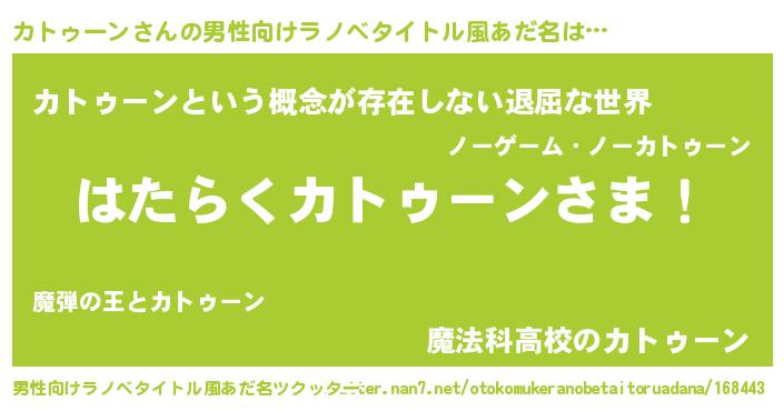 | 女子向けラノベタイトル風あだ名 | 『首の姫と首なしカトゥーン』 |