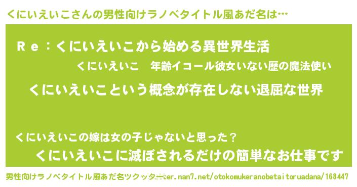 | 胡散臭い通販商品みたいなあだ名 | 『来世でも幸せになれる健康食品…その名も「くにいえいこ」』 |