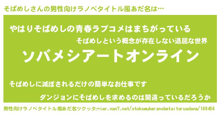 | ファンタジー風あだ名 | 『ソバフェル』『エターナルソバメシー』 |