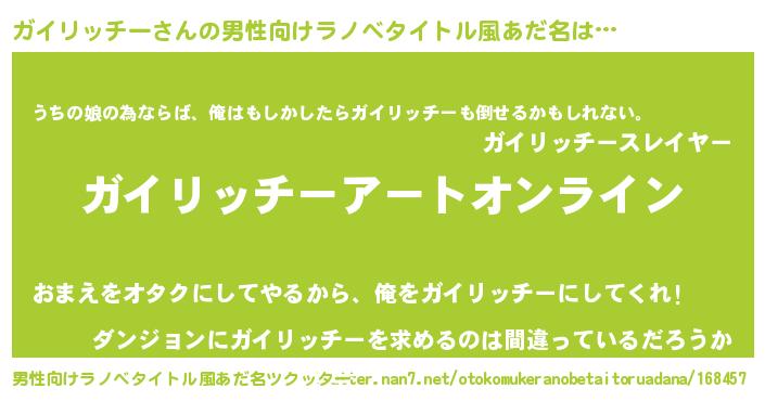 | 欧米人風あだ名 | 『マイケルガイリッチー』 |