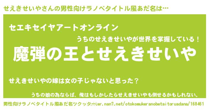 | 意味不明あだ名 | 『住所不定無職せえきせいや(6歳)』 |