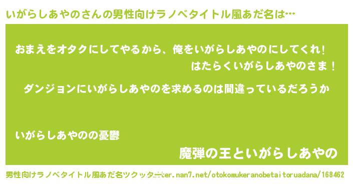 | 女子向けラノベタイトル風あだ名 | 『いがらしあやのの卵を拾いまして』 |