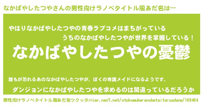 | 胡散臭い通販商品みたいなあだ名 | 『必ず成功する水晶球…その名も「なかばやしたつや」』 |